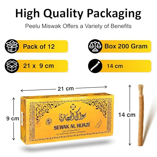 Pack of 12 Miswak Sticks Natural Toothbrush for Teeth Whitening, Oral Health & Fresh Breath, Siwak Stick Organic Wooden Vacuum Sealed Tooth Brush, Miswak Sticks for Teeth مسواك