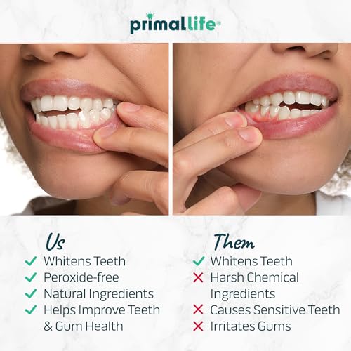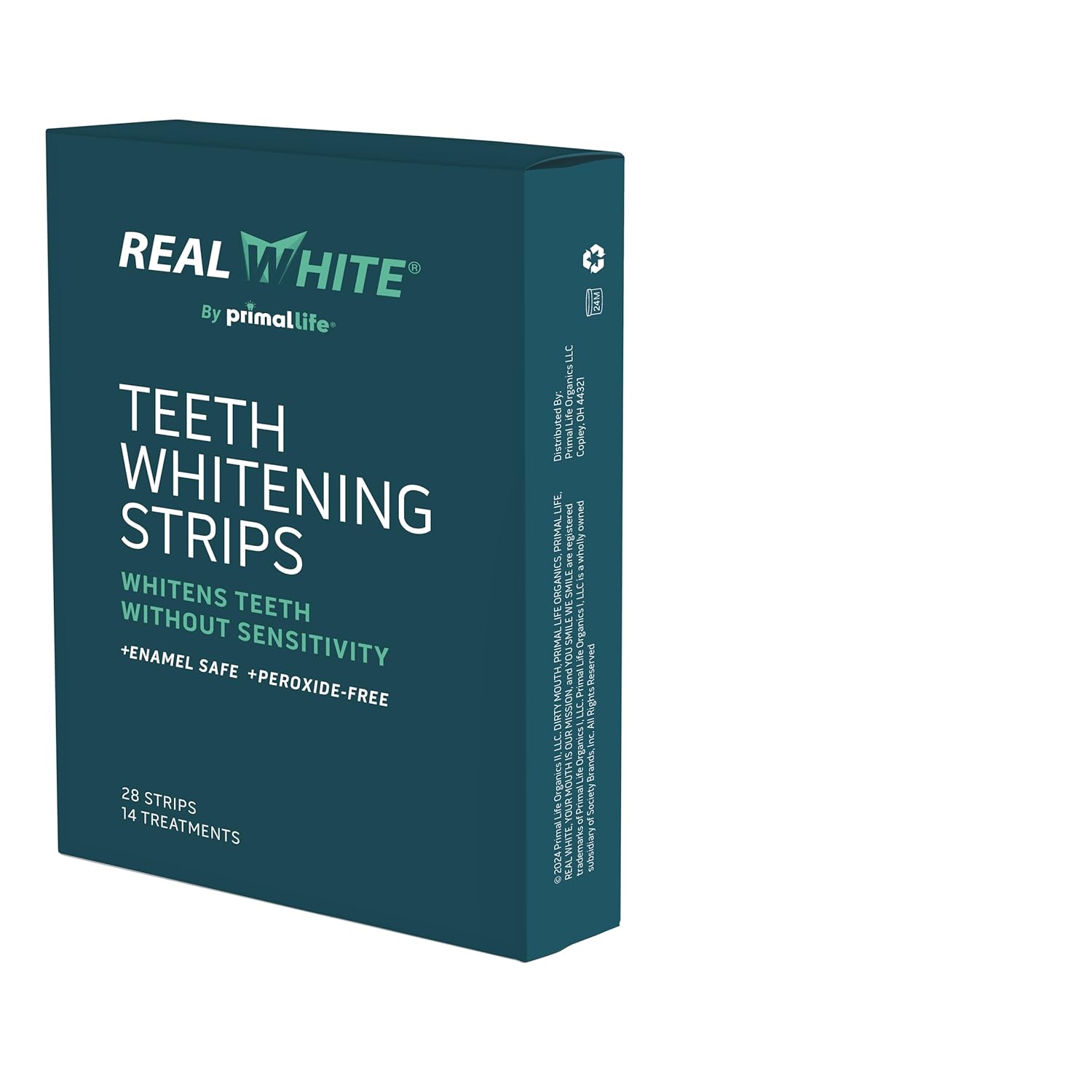 Primal Life Organics Real White Teeth Whitening Strips, All-Natural, Peroxide-Free, 28 Strips, 14 Treatments