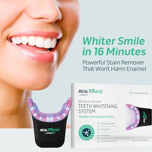 Primal Life Organics V4 Real White Red/Blue LED Light Teeth Whitening System - Includes 20 Treatments