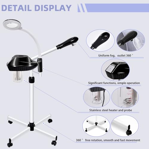 Professional Facial Steamer, 2 in 1 Facial Steamer with 5X Magnifying Lamp for Deep Cleansing and Hydration, Face Steamer on Wheels with Time Setting, Estheticians Steamer for Spa, Salon and Home Use
