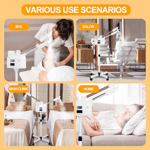 Professional Facial Steamer, 2 in 1 Facial Steamer with Ozone and Hot & Cold Mist for Facial Deep Cleaning and Hydration, Esthetician Steamer on Wheels, Ideal for Spa, Salon and Home Use