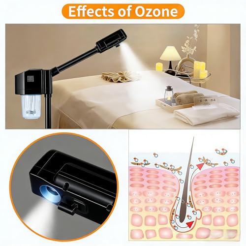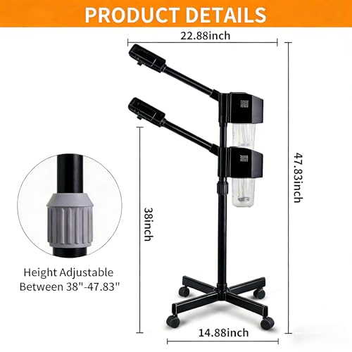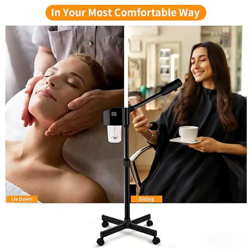 Professional Facial Steamer, Hot Mist Spray, Vaporizador Facial Steamer for Esthetician, Height Adjustable, SPA at Home, Black