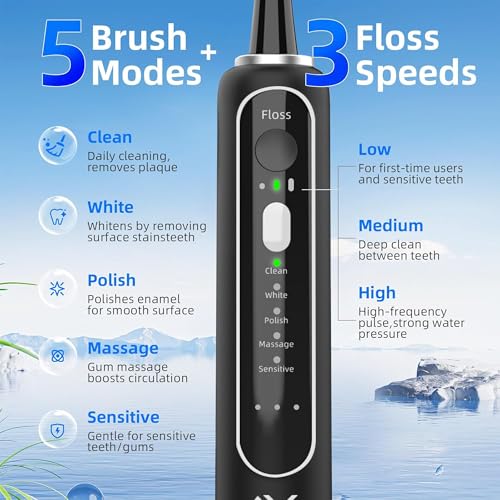 Professional Flossing Electric Toothbrush with Water Flosser, 2 in 1 Toothbrush and Water Flosser Combo, Sonic Electric Toothbrush Cordless Flossing Brush (Black)