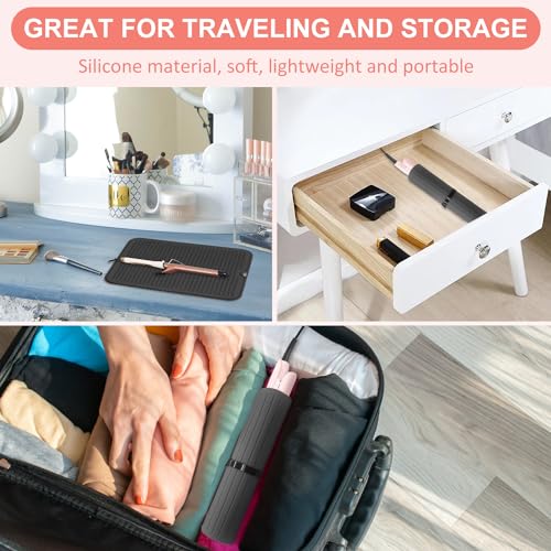 Quccefods Large Heat Resistant Silicone Mat for Hair Tools: Curling Iron, Flat Iron, Hair Straightener - Portable Hair Styling Pad Cover