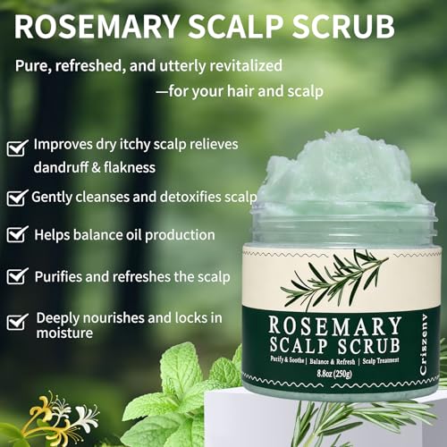 Scalp Scrub,Scalp Exfoliator with Rosemary & Mint,Hair Treatment for Itchy Scalp, Dandruff & Buildup Removal, Clarifying Scrub Shampoo with Scalp Massager for Detox & Nourishment/8.8oz