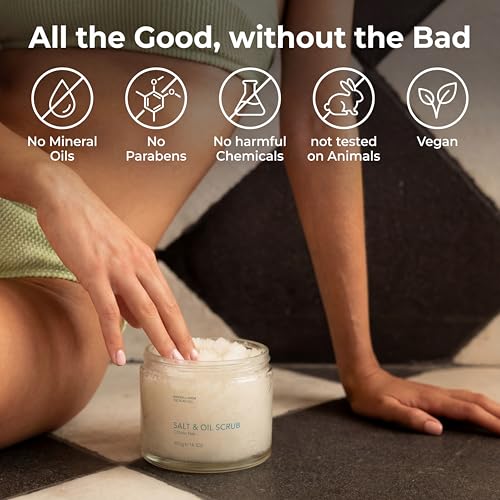 SEACRET Minerals Dead Sea Salt & Oil Body Scrub - Exfoliator with Rosehip, Sea Buckthorn & Green Tea, Mineral Rich Spa Treatment Stimulates Cell Renewal for a Rejuvenated Glow, Ocean Mist, 14.1 oz