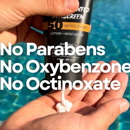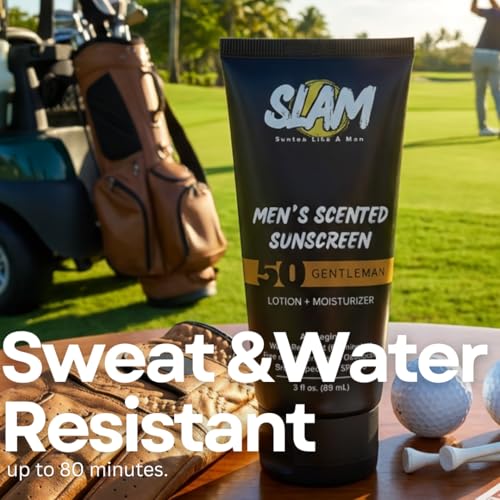 SLAM GentleMan Men's Sunscreen Lotion SPF 50 & Moisturizer – Face & Body Sunblock, Anti-Aging, Water-Resistant, Hawaii Act 104 Safe, Skincare for Men, Cologne Scented – 3 fl oz. each. Double pack.