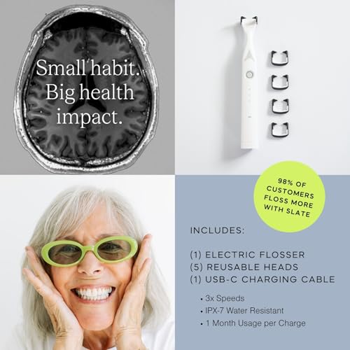 Slate Electric Flosser - Rechargeable | 3-in-1 Dentist-Invented with Reusable Floss Heads, Gum Brushes & Tongue Scraper | More Effective Than String or Water Floss