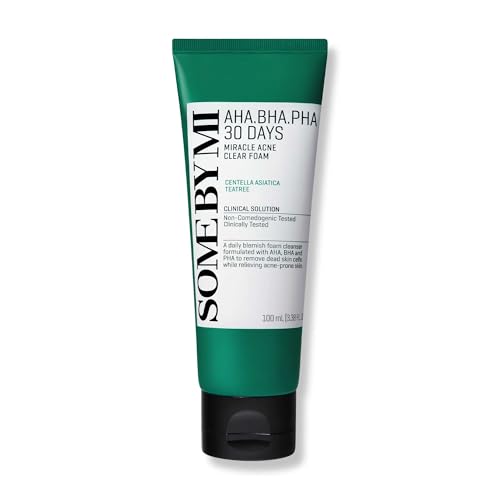 SOME BY MI AHA BHA PHA 30 Days Miracle Acne Clear Foam – 3.38oz, 100ml – Korean Acne Face Wash for Smooth & Clear Skin – Salicylic Acid Cleanser for Exfoliation & Sebum Control – Korean Skin Care