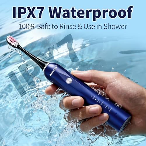 Sonic Electric Toothbrush for Adults, 5 Modes (Whitening/Clean/Sensitive/Polish/Massage), IPX7 Waterproof, 30-Day Battery Life, Includes 6 Brush Heads (Blue)