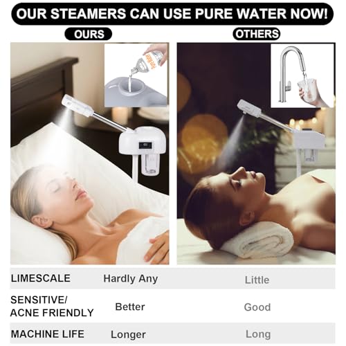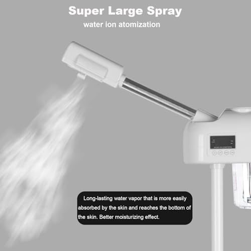 Stand Ozone Professional Facial Steamer with Digital Display, Adjustable Height & Rolling Base, Timer Function, 360° Rotatable Nozzle, Hot Mist Function, Use for Home, Salon SPA (White)