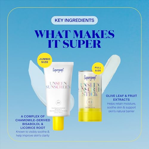 Supergoop! Invisible Icons SPF Set - Includes Unseen Sunscreen Broad Spectrum SPF 50 PA+++ (2.5 oz) & Unseen Sunscreen Stick SPF 40 (0.7 oz).