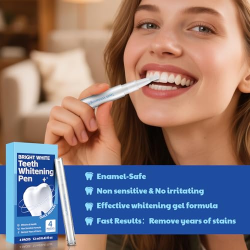 Teeth Whitening Pen - Effective Stain Removal Teeth Whitening Gel Kit, Pro No Sensitivity Teeth Whitener for Bright White, Travel-Friendly, Mint (0.11 Fl Oz (Pack of 4))