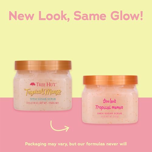 Tree Hut Shea Sugar Scrub Tropical Mango, 18oz, Ultra Hydrating and Exfoliating Scrub for Nourishing Essential Body Care