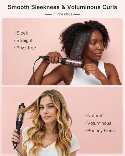 Upgraded Thermal Brush for Hair Volume Boost, 1.5 Inch Heated Curling Brush for Fast Styling & Blowout Look, 2× Negative Ion Release to Smooth Frizz, Airflow Heat & Dual PTC Technology Hair Tool