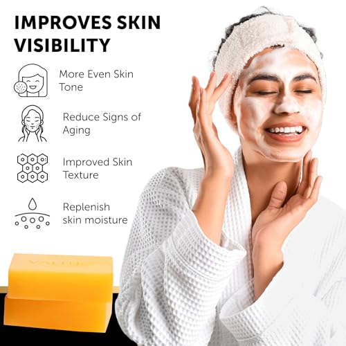 VALITIC Kojic Acid Dark Spot Remover Soap with Turmeric, Vitamin C, Retinol - Original Japanese Complex with Hyaluronic Acid, Vitamin E, Shea Butter, Castile Olive Oil - 2 Pack and African Net Sponge