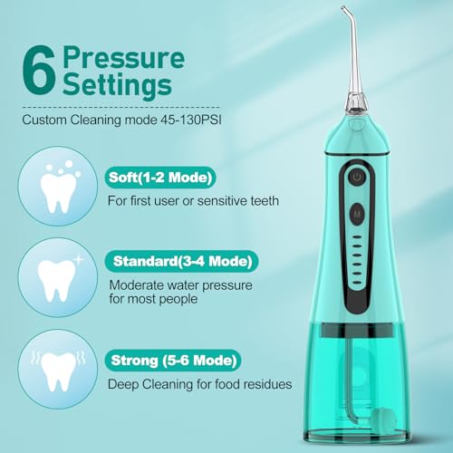 Water Dental Pik Flosser,Grinest 7 Modes Rechargeable Water Dental Picks for Teeth Cleaning Cordless Oral Irrigator Portable IPX7 Waterproof Tooth flossers for Home Travel-Green