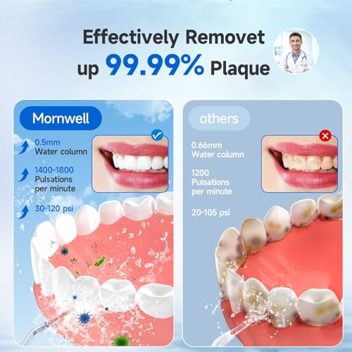 Water Flosser, Mornwell Water Flossers for Teeth - 330ML Tank USB Rechargeable Dental Flosser, IPX7 Waterproof 3 Modes & 4 Jet Tips Portable Dental Oral Irrigator,Professional Water Flosser