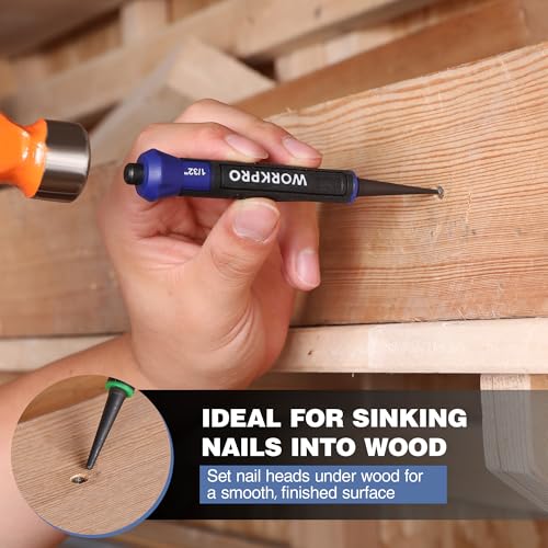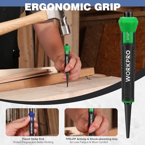 WORKPRO 3-Piece Nail Punch Set, Includes 1/32", 1/16", 3/32" Nail Setter, Color Coded Nail Set Tool with Shock-Absorbing Grip
