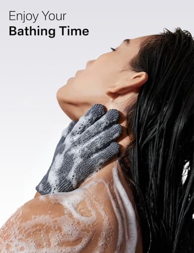 Yiclick Heavy Exfoliating Gloves 4Pcs, Exfoliating Mitts, Body Scrubber for Bath Shower Exfoliation, Body Scrub Exfoliator for Dead Skin Remover, Exfoliate Sponge Loofah Washcloth Men Women